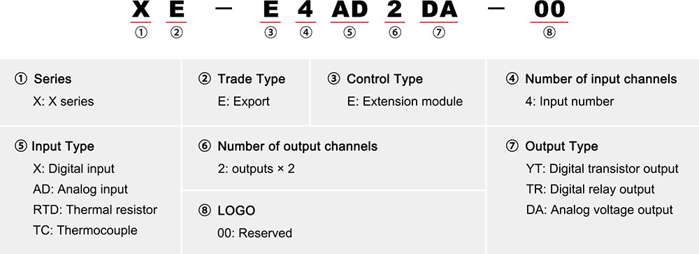 | 6 | X-E4TC-00 | X-serien universell temperaturkontroll utvidelsesmodul, kanal termoelement×4, 16bit |