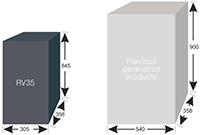 | Raffinert design Installasjonsareal redusert med 50 % Volum redusert med 30 % | |