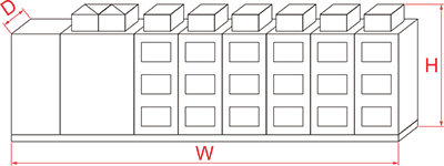 | Model | VFD-strøm (kW ) | Kapasitet ( kVA ) | Utgangsstrøm (A) | VFD-størrelse ( D*D*H mm ) | Vekt ( T ) |