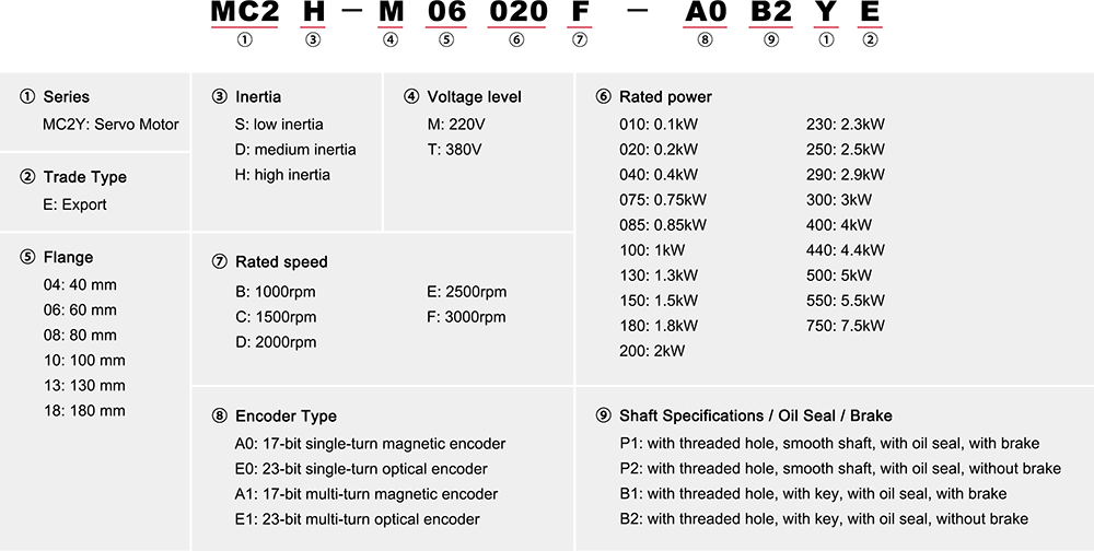 | Servomotorer i MC2Y-serien – 180 flens* | |