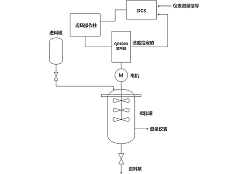 | 04 Systemintroduksjon: I dette systemet driver en RVE32 7,5KW inverter 7,5KW blandemotoren, driver røreviftebladene til å røre, og rører deretter jevnt gjennom vakuumventilen, og sender den deretter til matepumpen for å delta i neste kjemiske reaksjon etter å ha møtt kravene. Start/stopp-driften til frekvensomformeren realiseres gjennom feltdriftskolonnen, og frekvensomformeren sender tilbake den faktiske verdien av motorhastigheten til DCS, og operatøren måler signalet og den faktiske hastighetsverdien i henhold til instrumentet til blandetanken. Gi en kommando til frekvensomformeren for å øke eller redusere motorhastighetsreferansen. | | ||||||||||||||||||