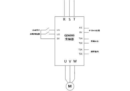 | 06 Bruk på nettstedet: I henhold til plasssituasjonen på stedet er en omformer i RVE32-serien installert i styreskapet, og omformerinstallasjonen og motoren på stedet er som vist på figuren. | | ||||||||||||||||||
